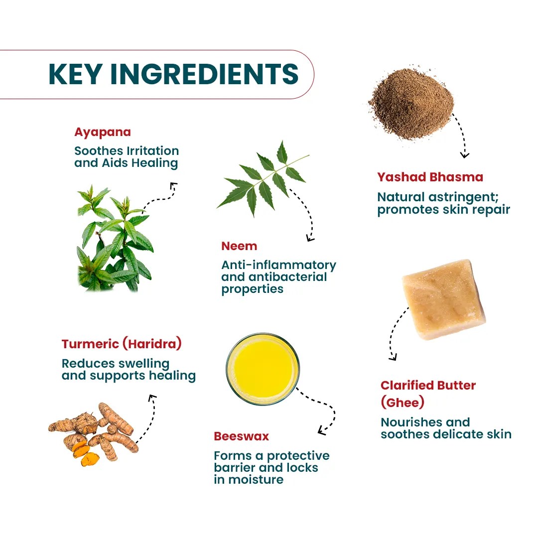 Beeswax, Ghee & Coconut Oil – Moisturize and form a protective healing layer