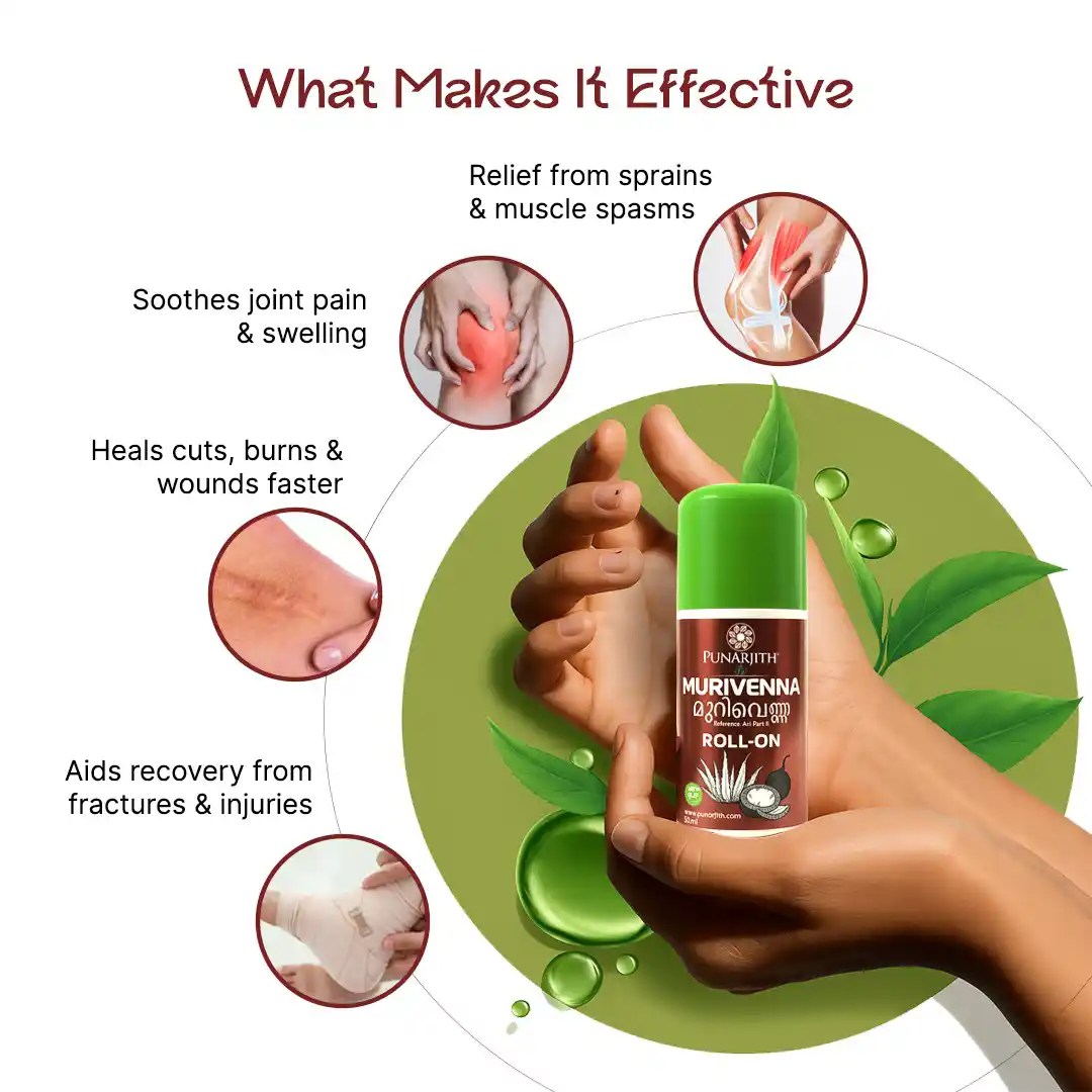 Punarjith Murivenna Roll-On – Ayurvedic Pain Relief Oil for Sprains and Wounds with Fast Healing Power